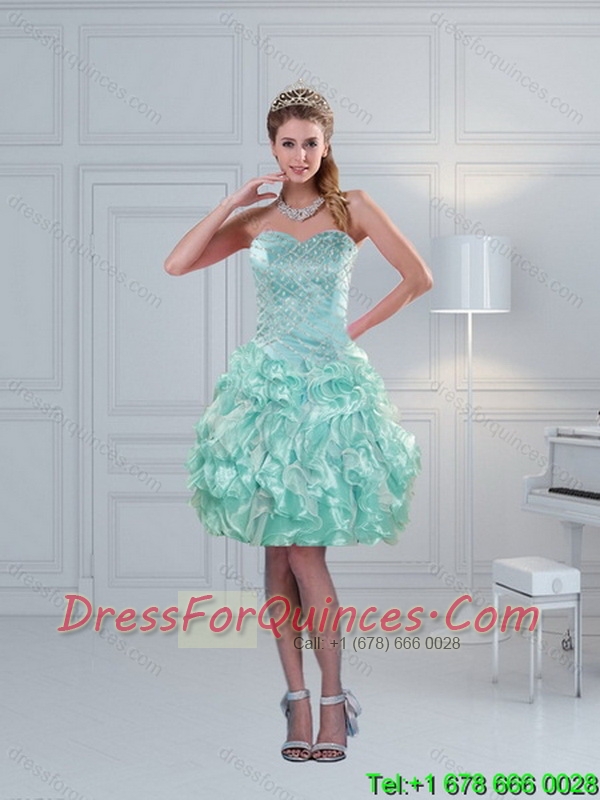 2015 Elegant Aqual Blue Quinceanera Dresses with Beading and Ruffles