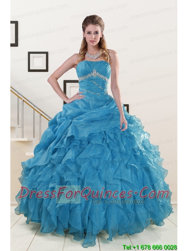 2015 Luxurious Strapless Quinceanera Dresses with Beading and Ruffles