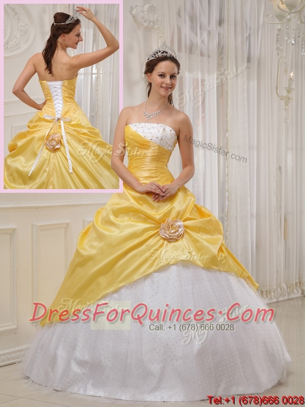 2016 Elegant Yellow Ball Gown Strapless Quinceanera Dresses