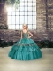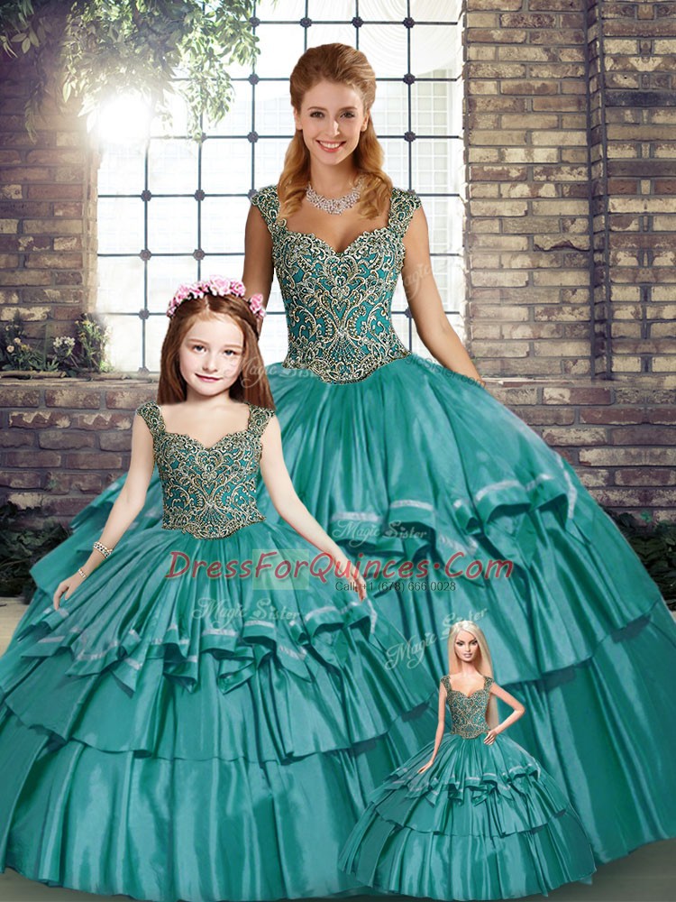 Adorable Sleeveless Taffeta Floor Length Lace Up Quinceanera Gowns in Teal with Beading and Ruffled Layers