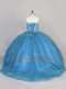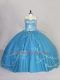 Affordable Blue Sleeveless Tulle Brush Train Lace Up Quince Ball Gowns for Sweet 16 and Quinceanera