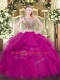 Artistic Scoop Sleeveless Sweet 16 Quinceanera Dress Floor Length Beading and Ruffles Fuchsia Tulle