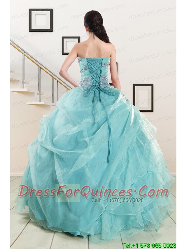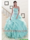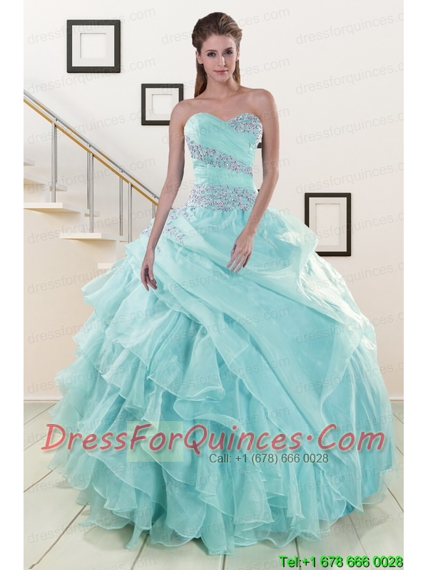 Beading and Ruffles Pretty Quinceanera Dresses in Turquoise for 2015