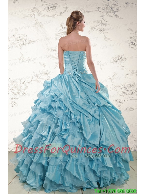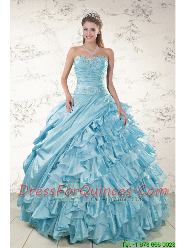 Beading Ruffles Aqua Blue Organza Quinceanera Dresses for 2015