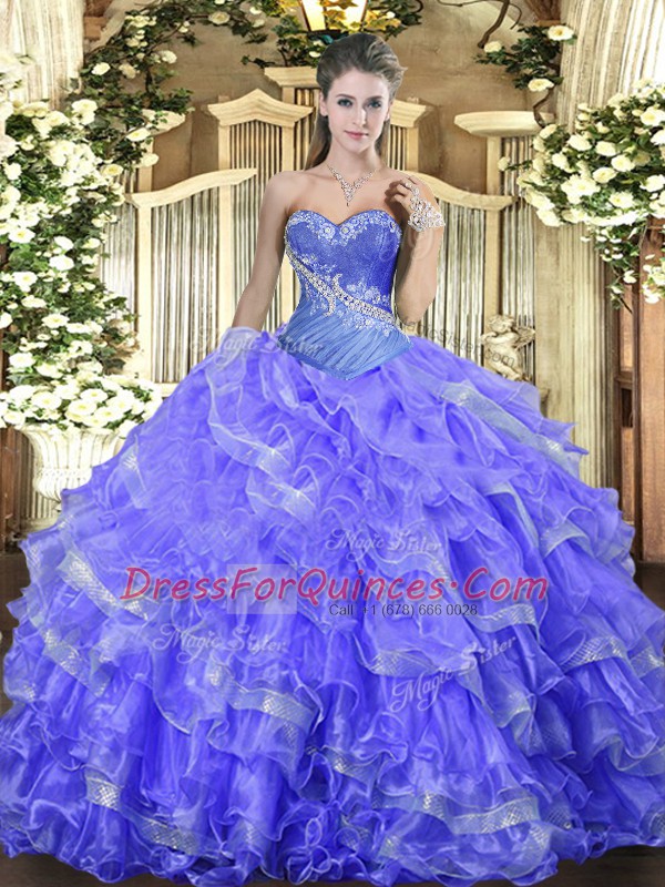 Blue Sweetheart Neckline Beading and Ruffled Layers Ball Gown Prom Dress Sleeveless Lace Up