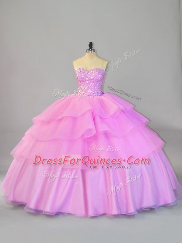 Classical Ball Gowns Sweet 16 Dress Lilac Sweetheart Organza Sleeveless Floor Length Lace Up