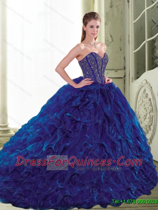 Classical Beading and Ruffles Sweetheart Ball Gown Quinceanera Dresses for 2015