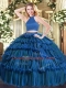 Custom Design Beading and Ruffled Layers Quinceanera Dress Blue Backless Sleeveless Floor Length