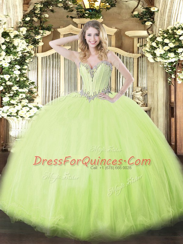 Custom Fit Yellow Green Vestidos de Quinceanera Military Ball and Sweet 16 and Quinceanera with Beading Sweetheart Sleeveless Lace Up