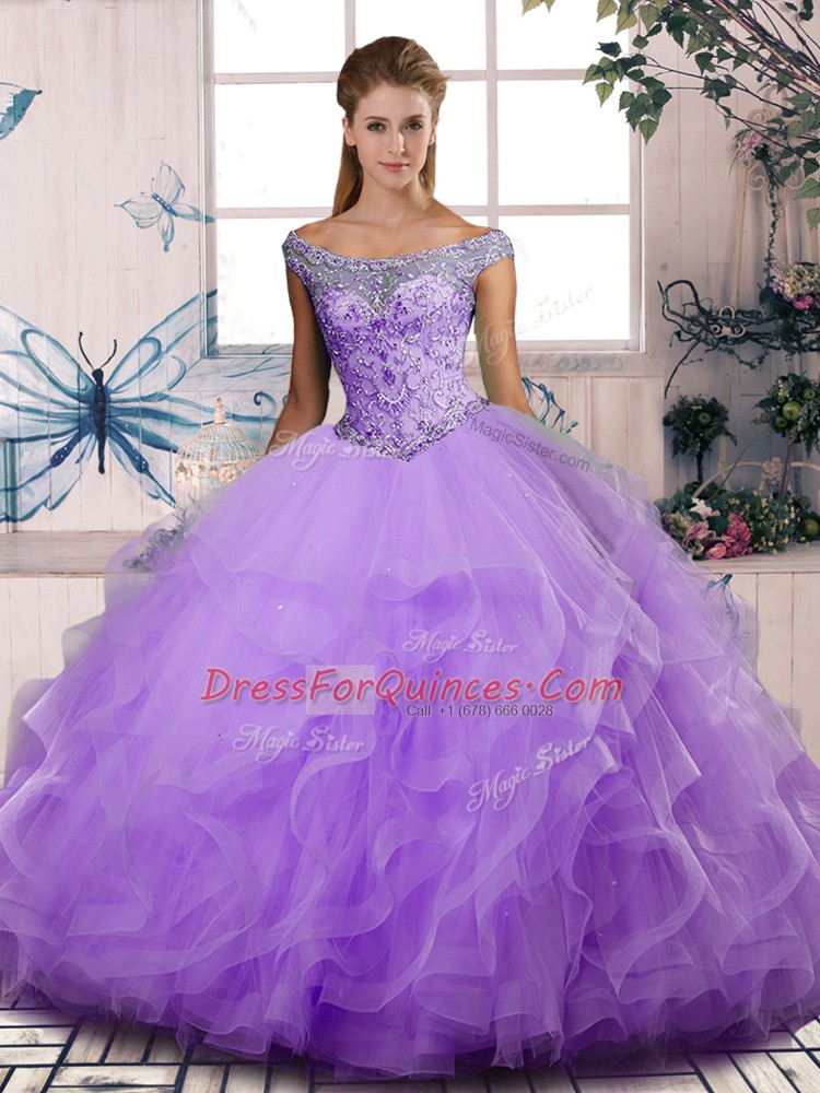 Custom Made Floor Length Lavender Sweet 16 Dresses Tulle Sleeveless Beading and Ruffles