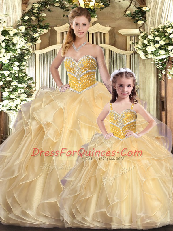 Customized Champagne Sleeveless Beading and Ruffles Floor Length 15th Birthday Dress