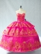Customized Hot Pink Organza Lace Up Sweetheart Sleeveless 15 Quinceanera Dress Embroidery and Ruffled Layers