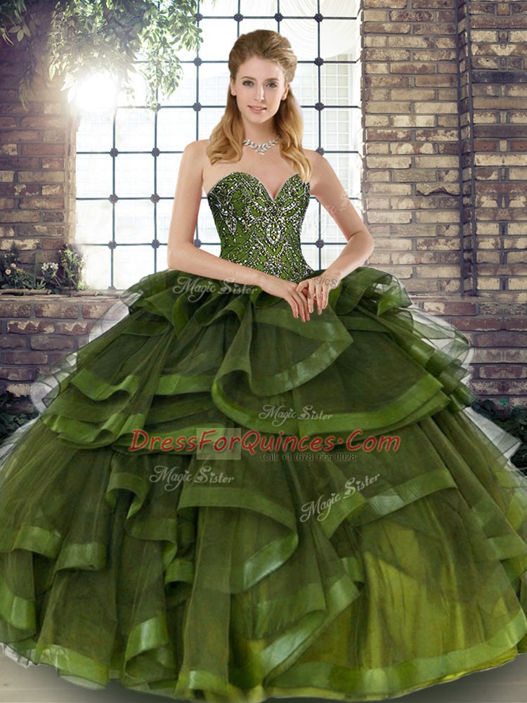 Customized Tulle Sleeveless Floor Length Ball Gown Prom Dress and Beading and Ruffles