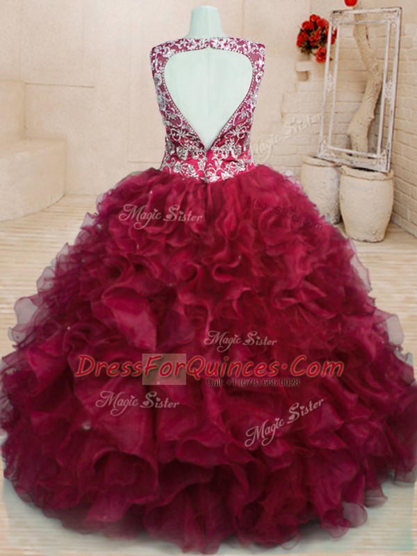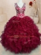 Discount V-neck Sleeveless Zipper Quinceanera Dresses Wine Red Organza