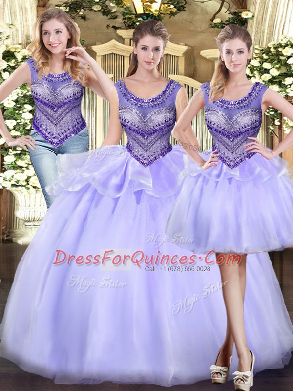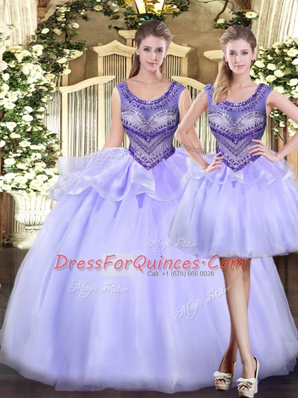 Dramatic Ball Gowns 15th Birthday Dress Lavender Scoop Tulle Sleeveless Floor Length Lace Up