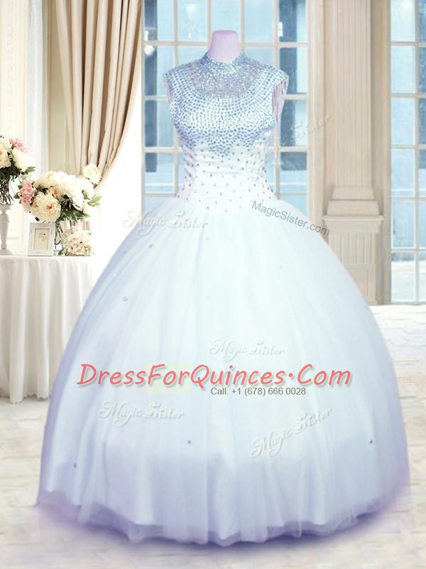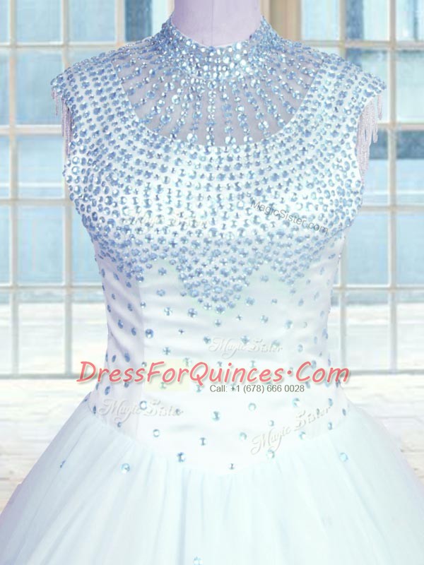 Dramatic Sleeveless Beading Zipper Quinceanera Dress