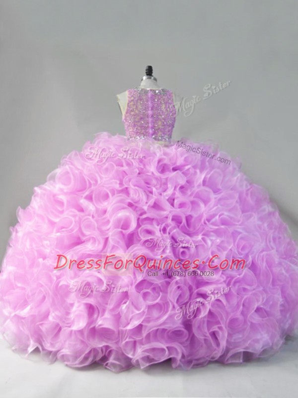 Dynamic Two Pieces Sweet 16 Dress Lilac Scoop Fabric With Rolling Flowers Sleeveless Floor Length Zipper