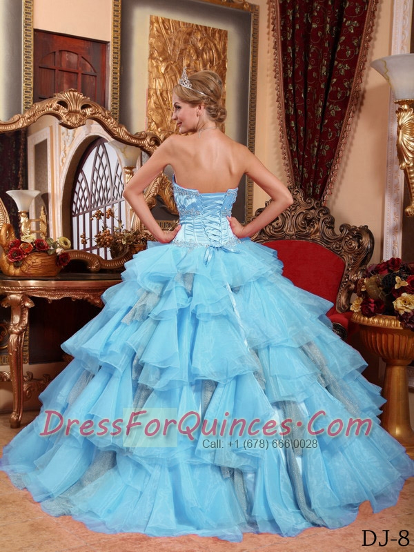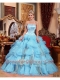 Elegant Aqua Blue Ball Gown Sweetheart Quinceanera Dress with Organza Beading