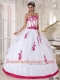 Elegant Ball Gown Strapless Floor-length Quinceanera Dress Red and White Appliques