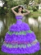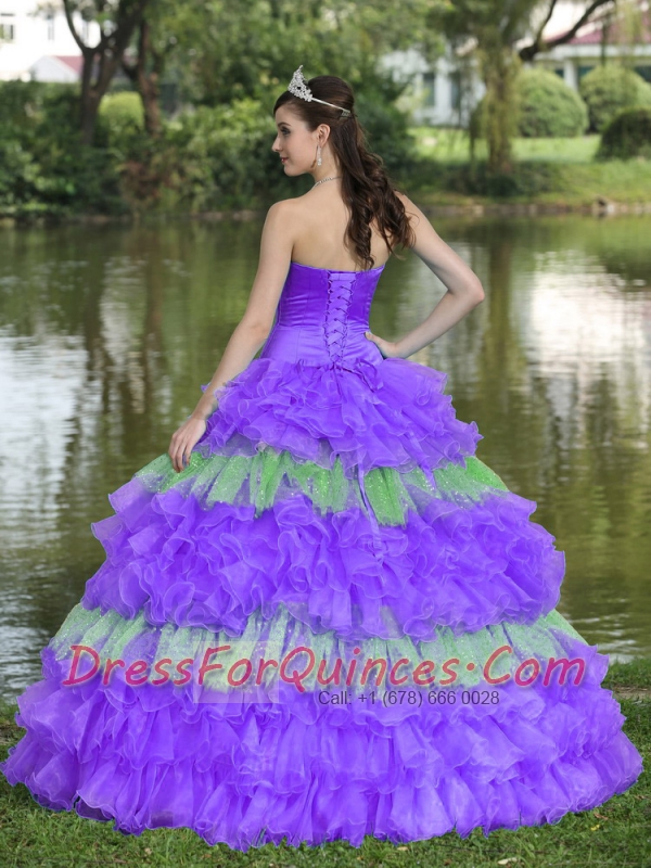 Elegant Beaded Decorate Bust Sequins Organza Multi-color Strapless Tiered Sweet Quinceanera Dress