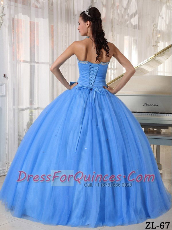 Elegant Blue Ball Gown Sweetheart Tulle Beading and Bowknot Quinceanera Dress