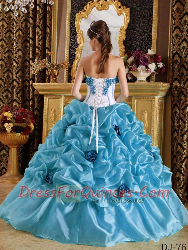 Elegant Blue Sweetheart Ball Gown Quinceanera Dress with Organza Hand Made Flowers