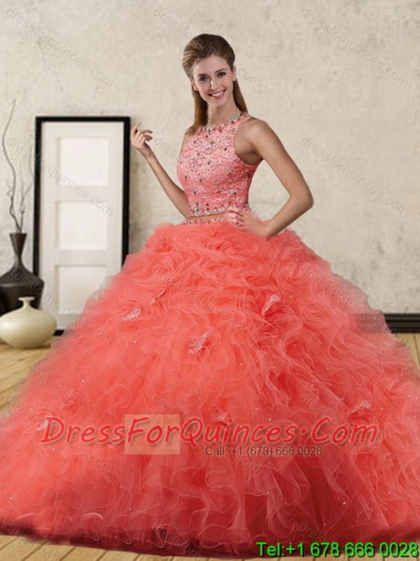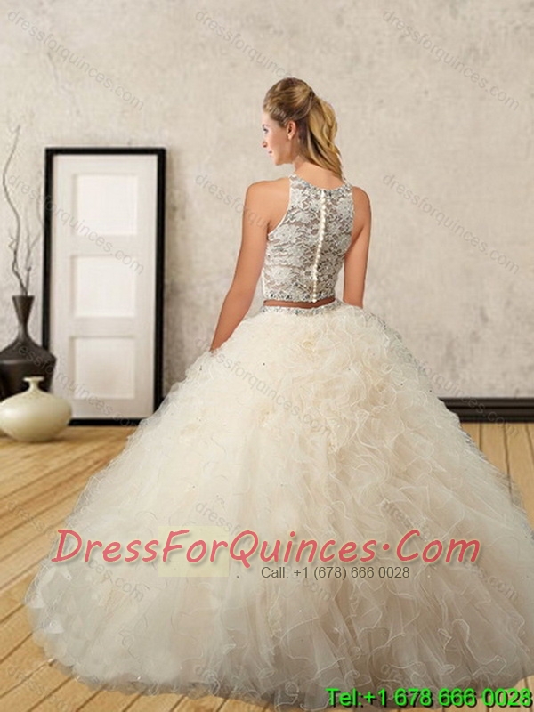 Elegant Champagne Scoop Quinceanera Dress with Beading and Ruffles