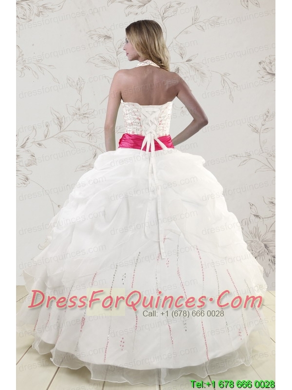 Elegant Halter Belt Beading White 2015 Quinceanera Dresses