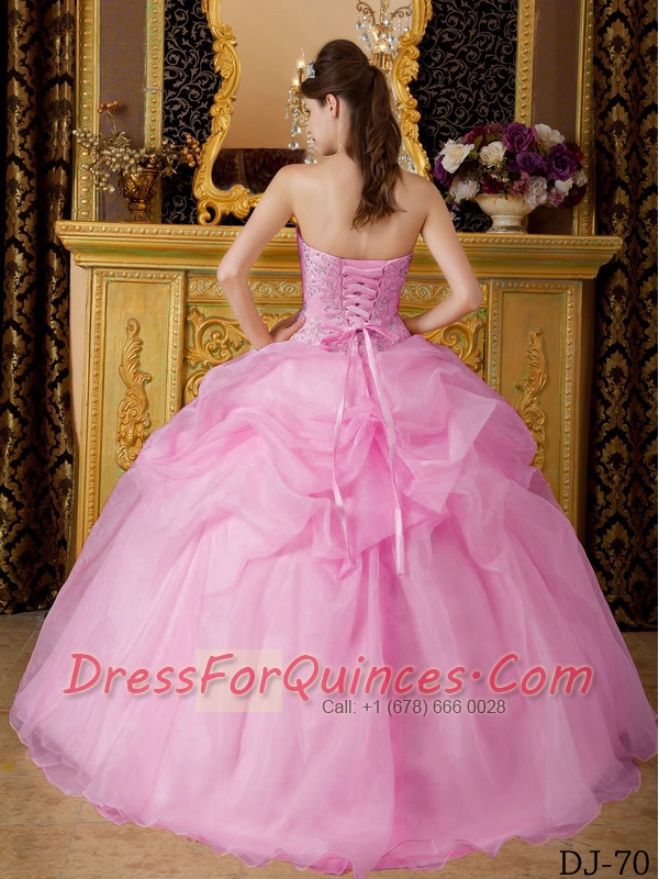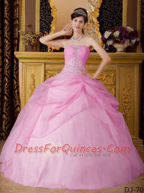 Elegant Pink Ball Gown Strapless Floor-length Organza Quinceanera Dress with Beading