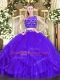 Elegant Purple Two Pieces Tulle Scoop Sleeveless Beading and Ruffles Floor Length Zipper Sweet 16 Dresses
