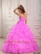 Elegant Romantic Ball Gown Sweetheart Baby Pink Quinceanera Dress with Organza Beading