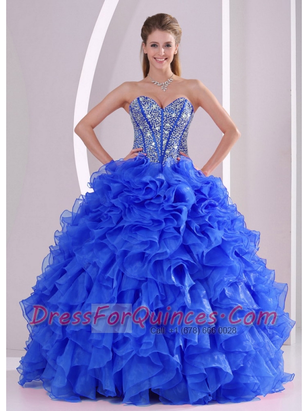 Elegant Royal Blue Sweetheart Ruffles and Beaded Decorate Quinceanera Dresses On Sale