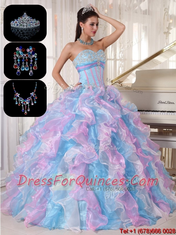 Elegant Ruffles and Appliques Quinceanera Gowns in Multi Color