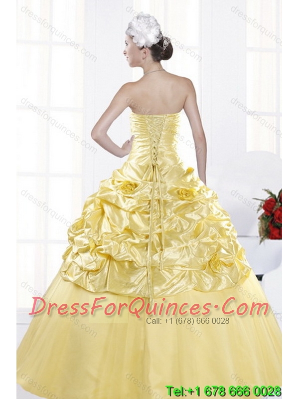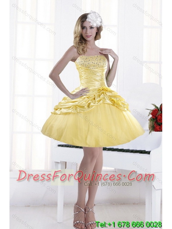Elegant Strapless 2015 Beading Quince Dresses with Beadings and Pick Ups