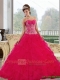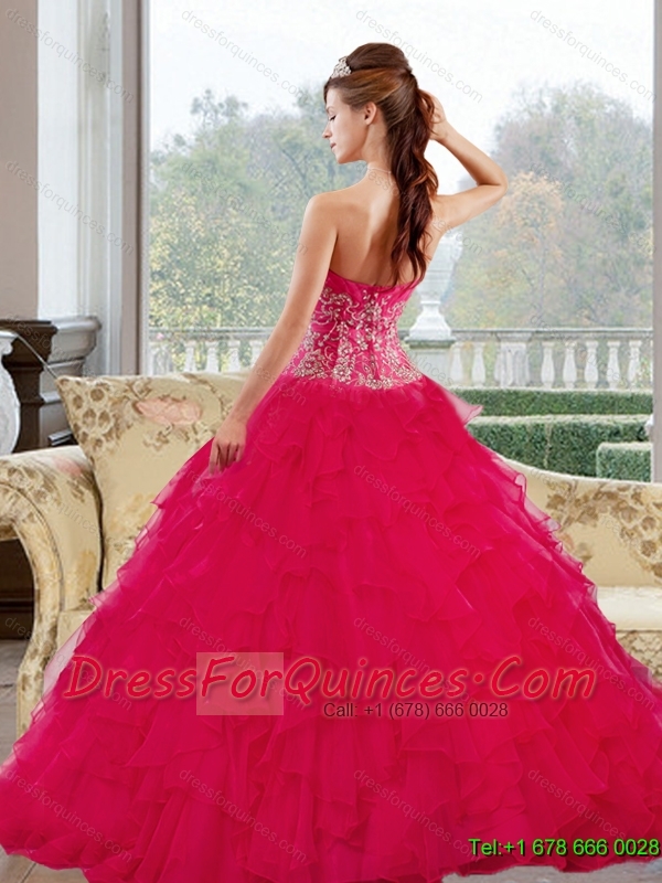 Elegant Sweetheart 2015 Red Quinceanera Gown with Appliques and Ruffles