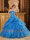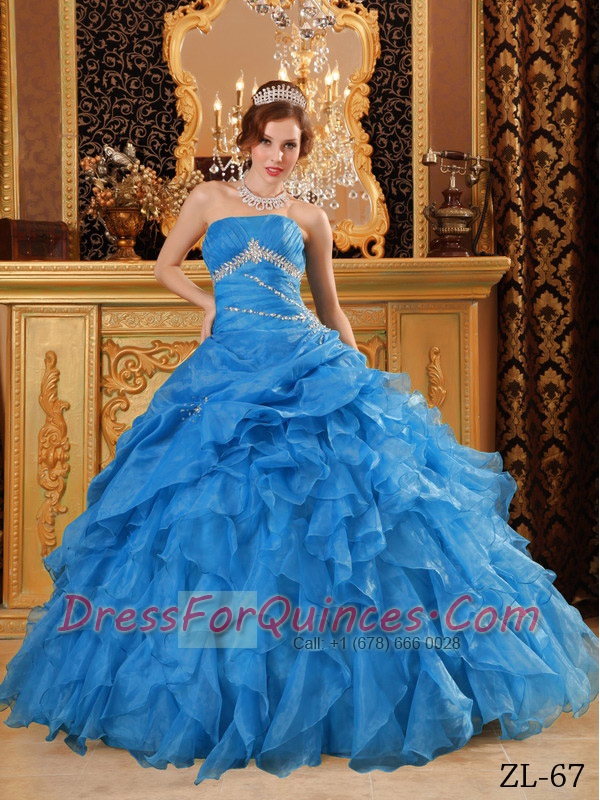 Elegant Teal Ball Gown Floor-length Organza Beading And Ruffles Quinceanera Dress