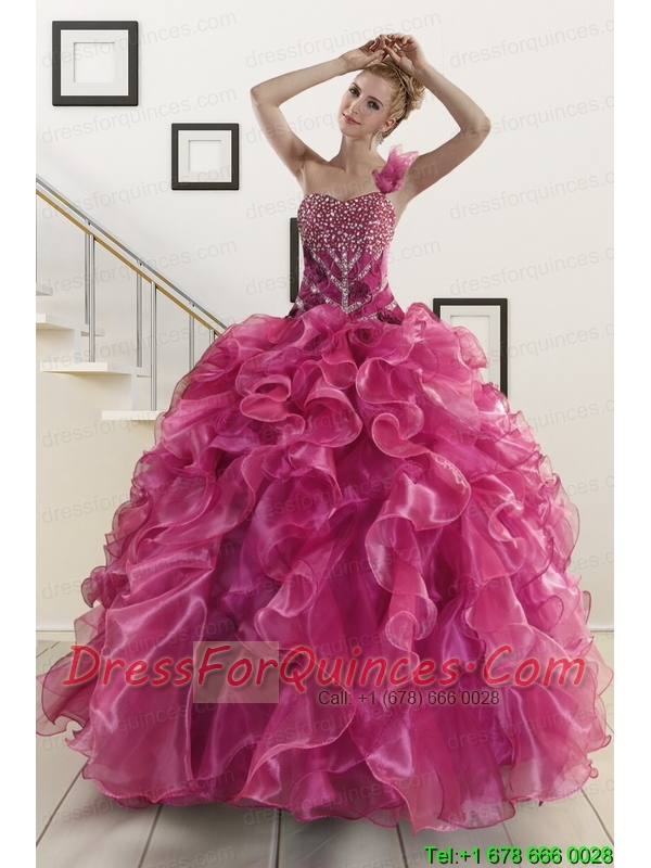 Exclusive Beading One Shoulder Sweet 16 Dresses in Fuchsia