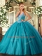 Extravagant Teal Lace Up Straps Beading Quinceanera Dresses Tulle Sleeveless