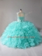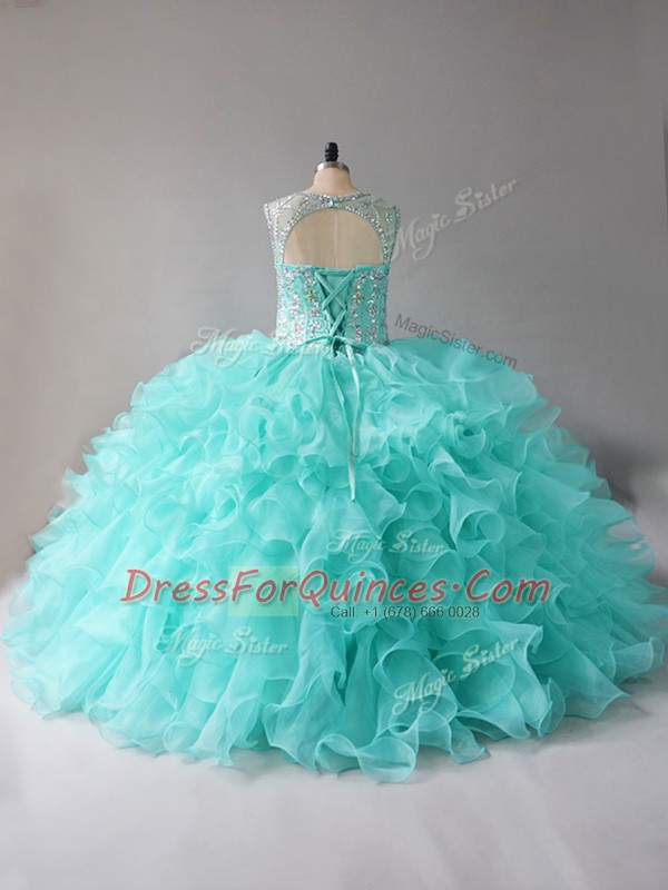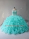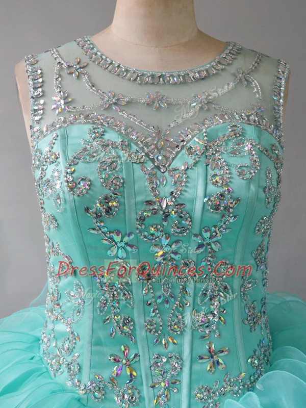 Fancy Sleeveless Beading and Ruffles Lace Up 15 Quinceanera Dress with Aqua Blue