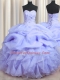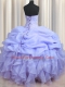 Fashion Visible Boning Ball Gowns Quinceanera Dresses Lavender Sweetheart Organza Sleeveless Floor Length Lace Up