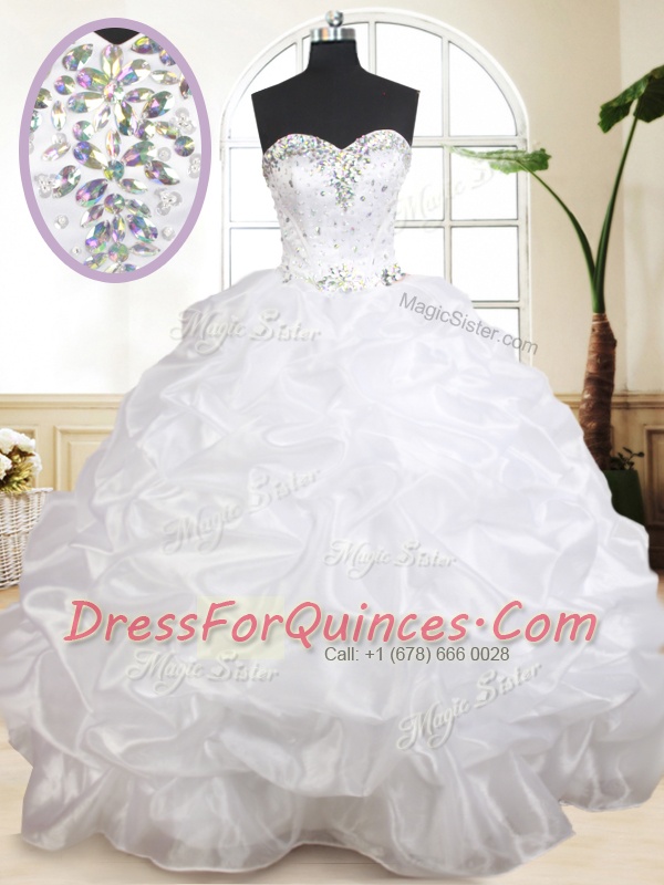 Fashionable Sweetheart Sleeveless Organza Quinceanera Dress Beading and Pick Ups Lace Up