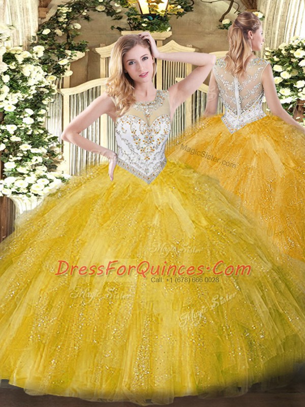 Floor Length Ball Gowns Sleeveless Gold Sweet 16 Dresses Zipper