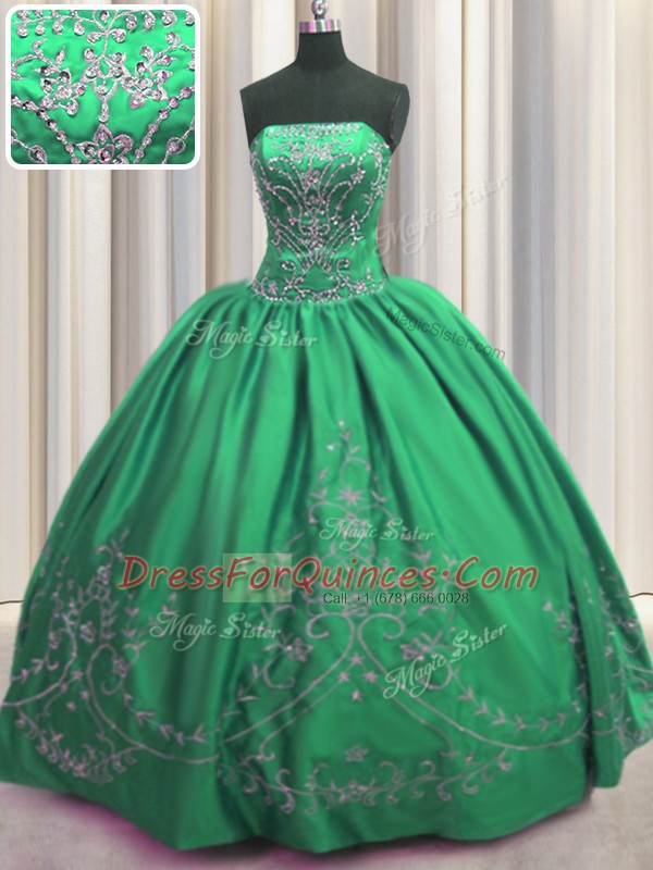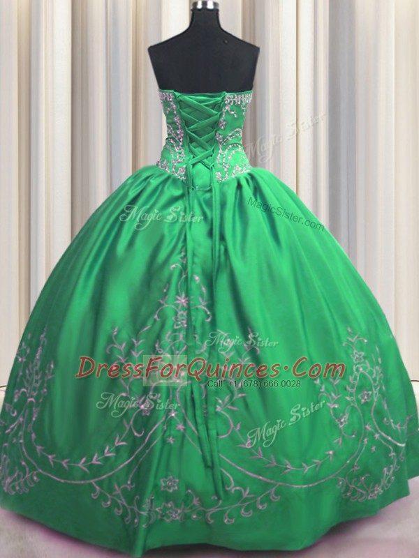 Floor Length Lace Up Sweet 16 Dress Green for Military Ball and Sweet 16 and Quinceanera with Beading and Embroidery