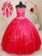 Floor Length Lace Up Vestidos de Quinceanera Red for Military Ball and Sweet 16 and Quinceanera with Beading