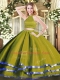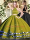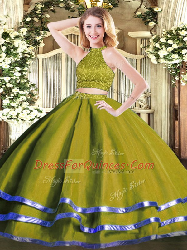 Floor Length Olive Green Sweet 16 Dresses Tulle Sleeveless Beading
