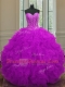 Floor Length Purple Quinceanera Gowns Organza Sleeveless Beading and Ruffles