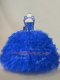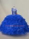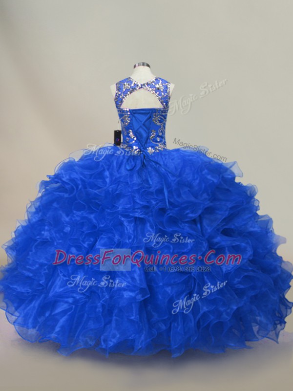 Floor Length Royal Blue Sweet 16 Dress Organza Sleeveless Ruffles and Sequins