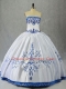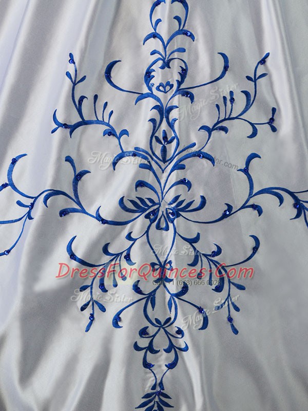 Free and Easy Blue And White Quinceanera Gowns Sweet 16 and Quinceanera with Embroidery Strapless Sleeveless Lace Up