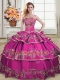 Fuchsia Lace Up Quinceanera Dress Embroidery and Ruffled Layers Sleeveless Floor Length