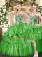 Green Lace Up Quinceanera Gown Beading and Ruffled Layers Sleeveless Floor Length